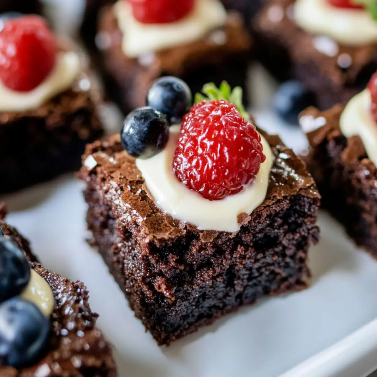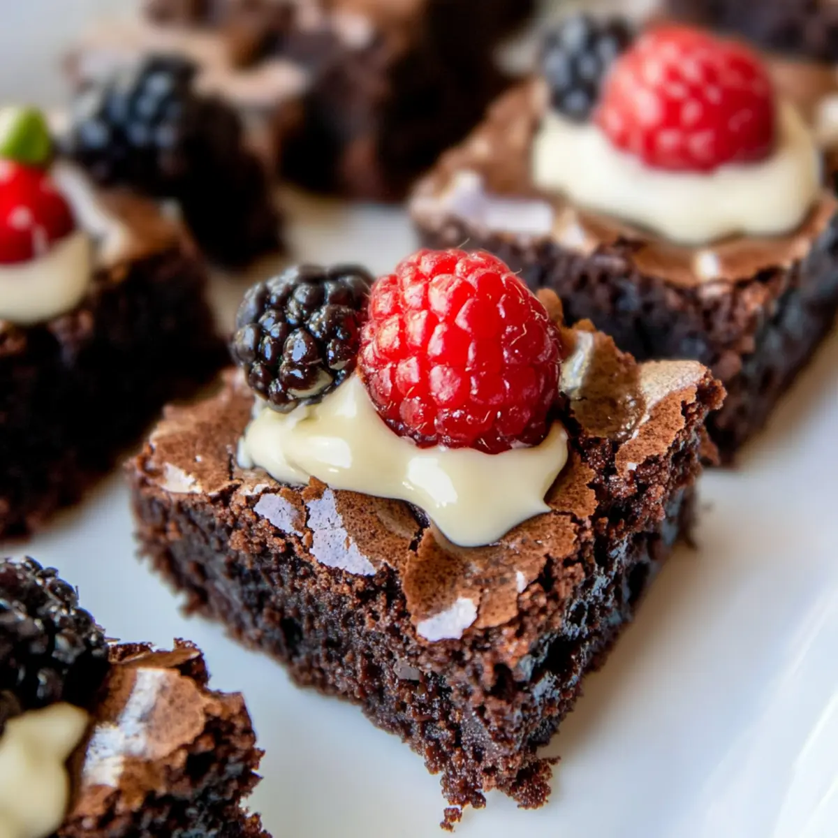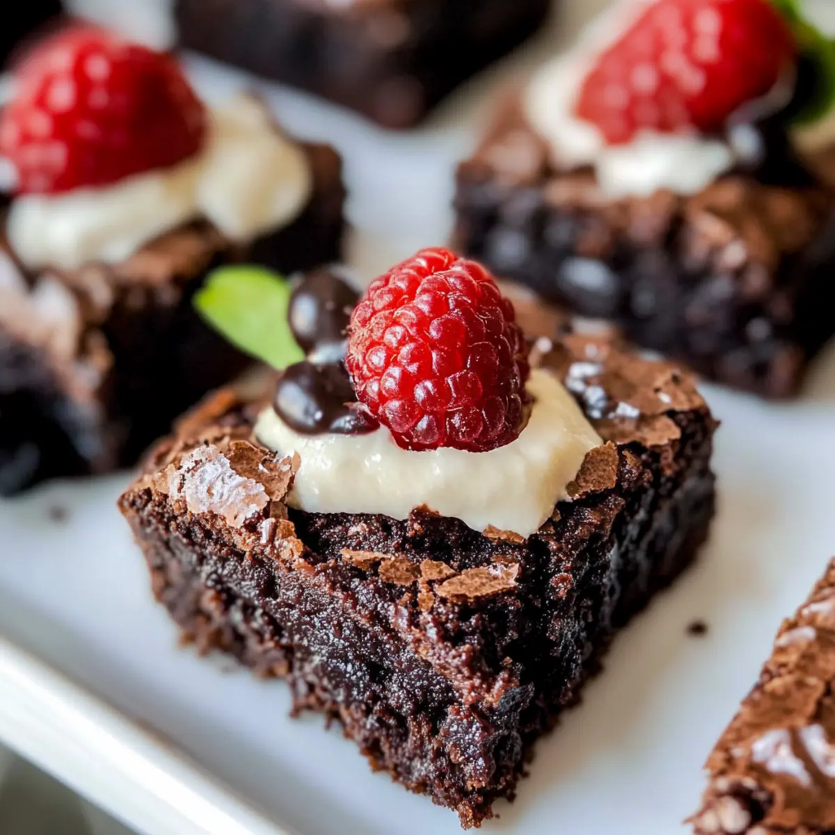 Fresh Berries: Strawberries or raspberries add a burst of freshness and tartness, balancing the fudgy texture and sweet flavor of the brownies.