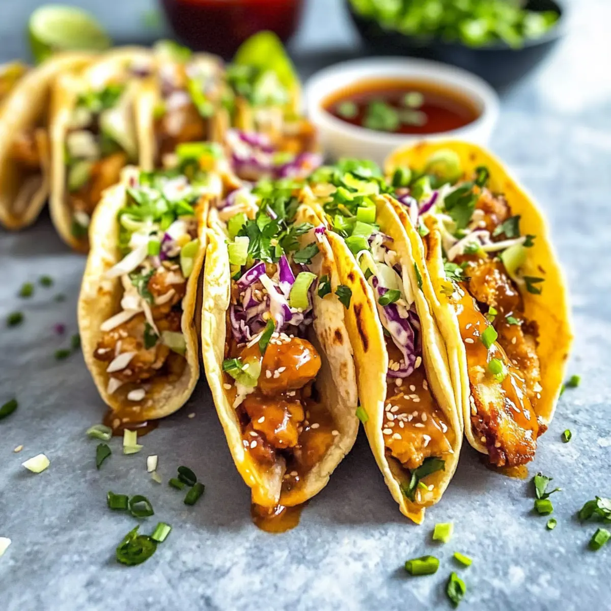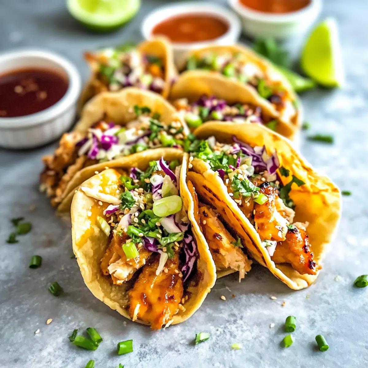 Now it’s time to bring your tacos together! Start by spooning a generous portion of the cooked chicken mixture into each crispy wonton shell. Top them with the zesty slaw, followed by a drizzle of sweet chili sauce for that extra kick of flavor. Finish off each taco with a sprinkle of chopped cilantro and sesame seeds if desired.