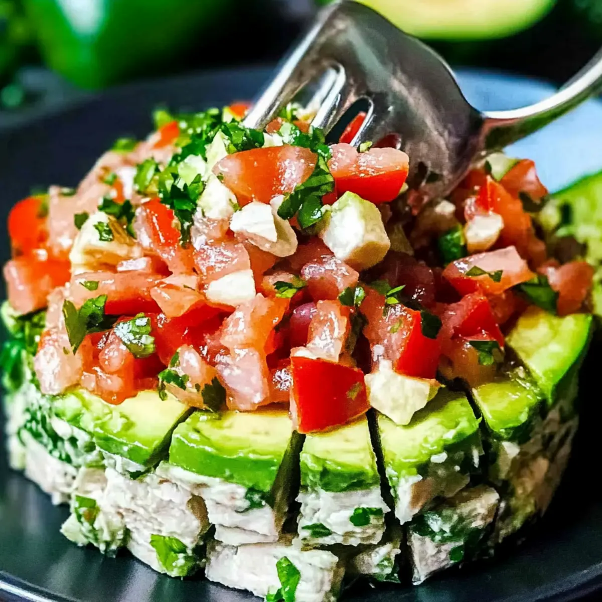 To create a visually stunning presentation and enhance the flavors, repeat the process with a second layer. Add the remaining avocado on top, spread it evenly, then add the rest of the tuna mixture, finally topping it with the remaining pico de gallo. This layering not only looks beautiful but allows a harmony of flavors in each bite of your decadent Avocado Tuna Salad.