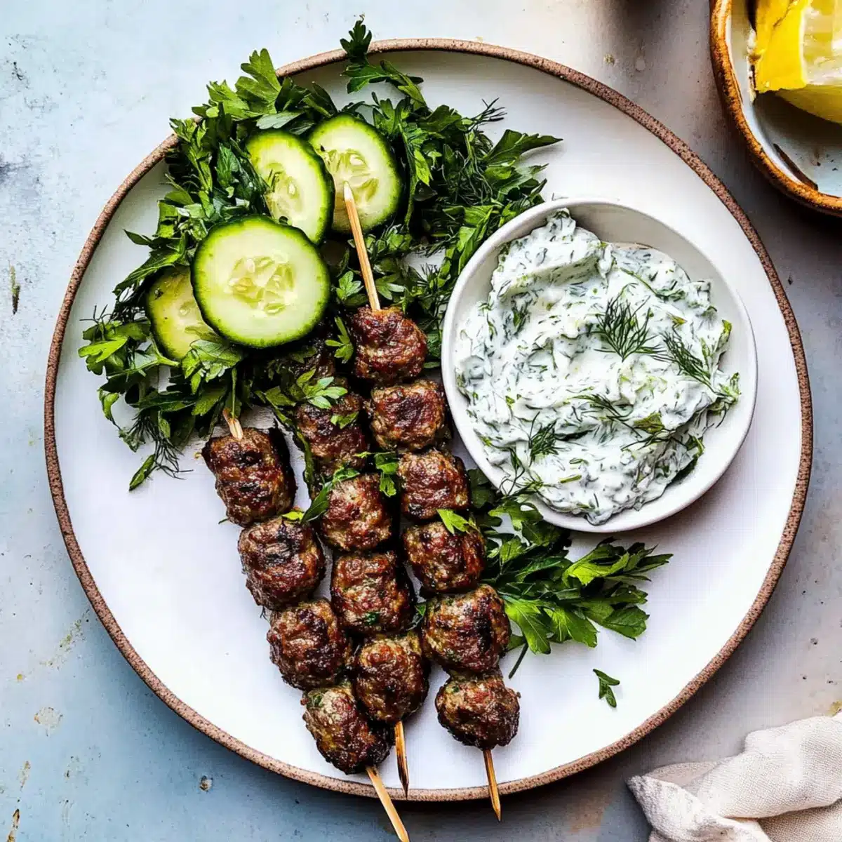 - Lemon Sorbet: To round out the meal, serve a tangy lemon sorbet for dessert—its icy sweetness offers a refreshing finish to the delightful flavors of baked kofta kebabs!