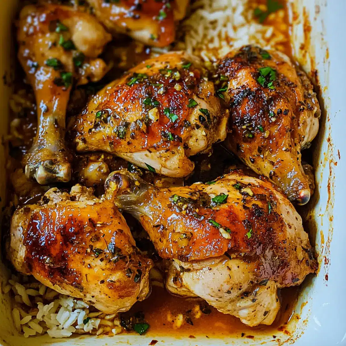 Place the baking dish in the preheated oven and bake uncovered for about 1 hour and 45 minutes. Keep an eye on the chicken; it’s done when the skin is golden brown, juices run clear, and the meat easily pulls away from the bone. This step is key to achieving that perfect tenderness.