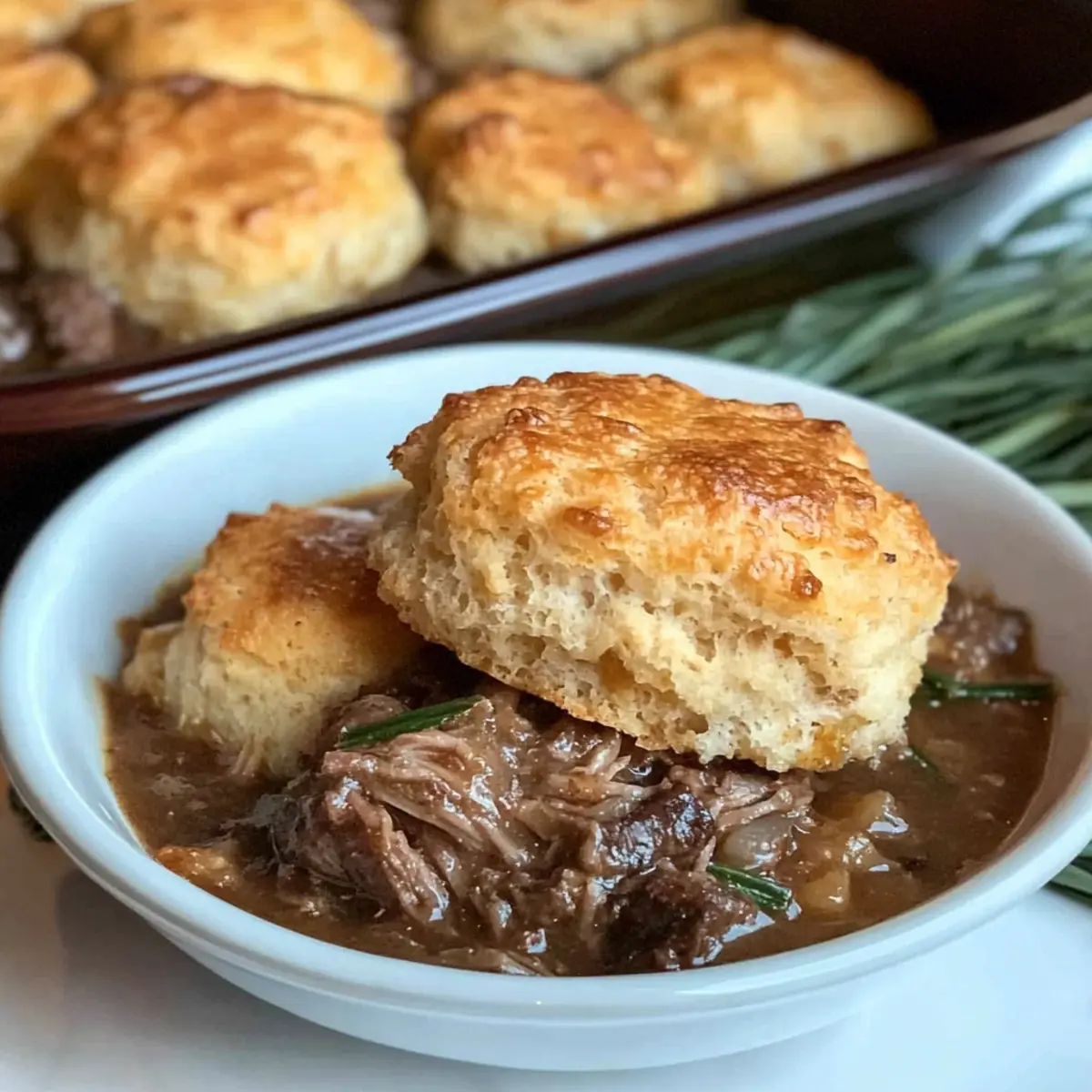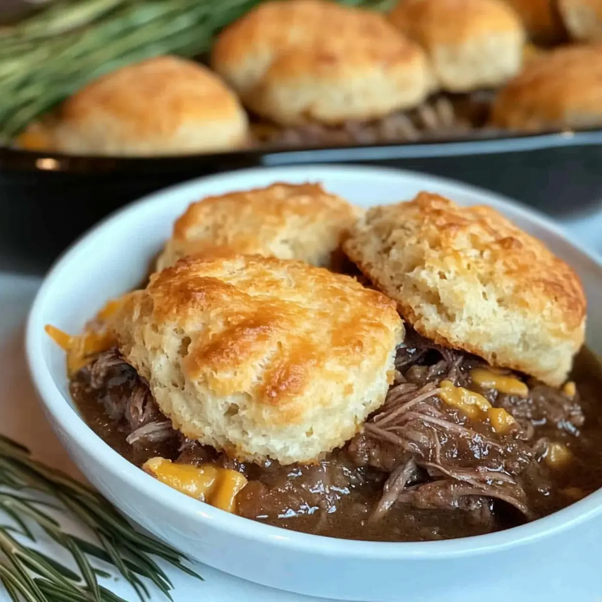Different Cheeses: Substitute Cheddar cheese with Gouda, Monterey Jack, or a spicy Pepper Jack for a unique flavor experience that complements the biscuit topping. Each cheese brings its own charm!