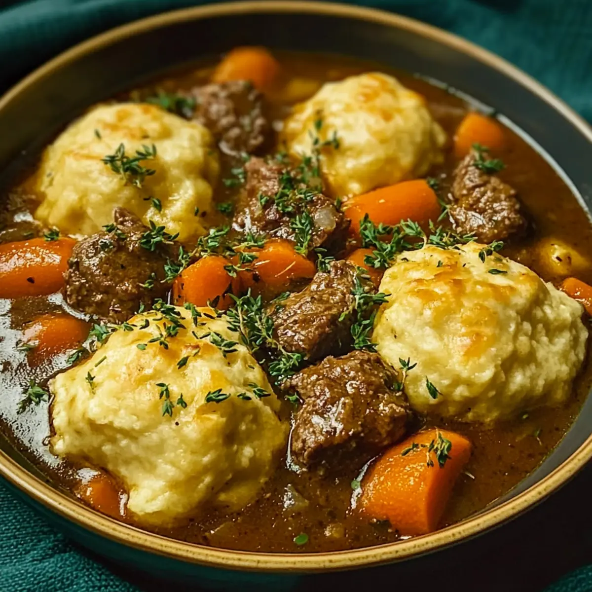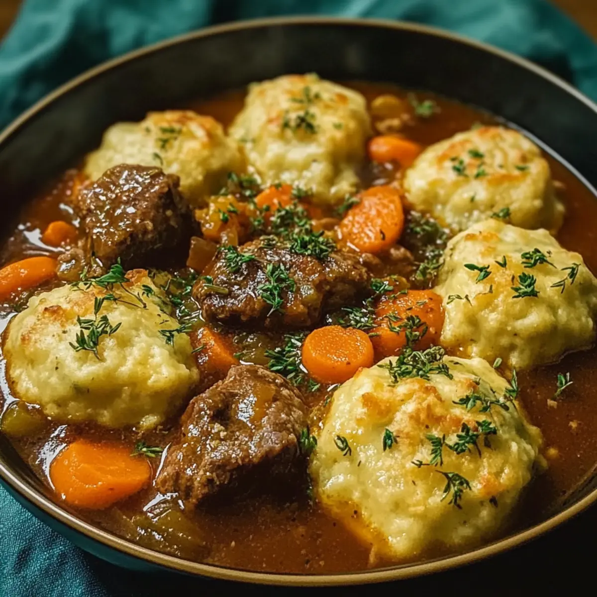 Hearty Beef Stew with Cheddar Herb Dumplings for Cozy Nights