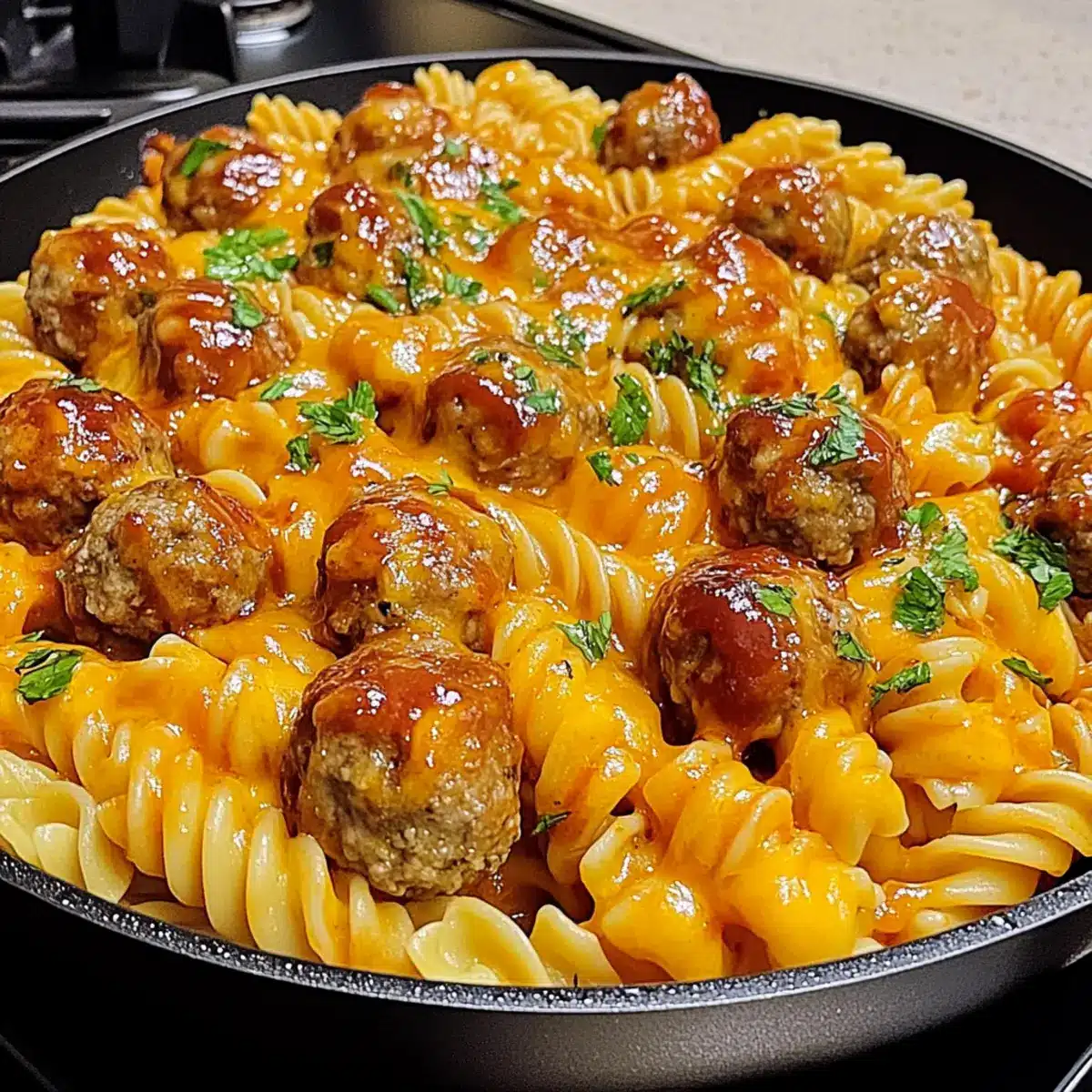BBQ Ranch Meatball & Cheddar Pasta Skillet for Busy Nights