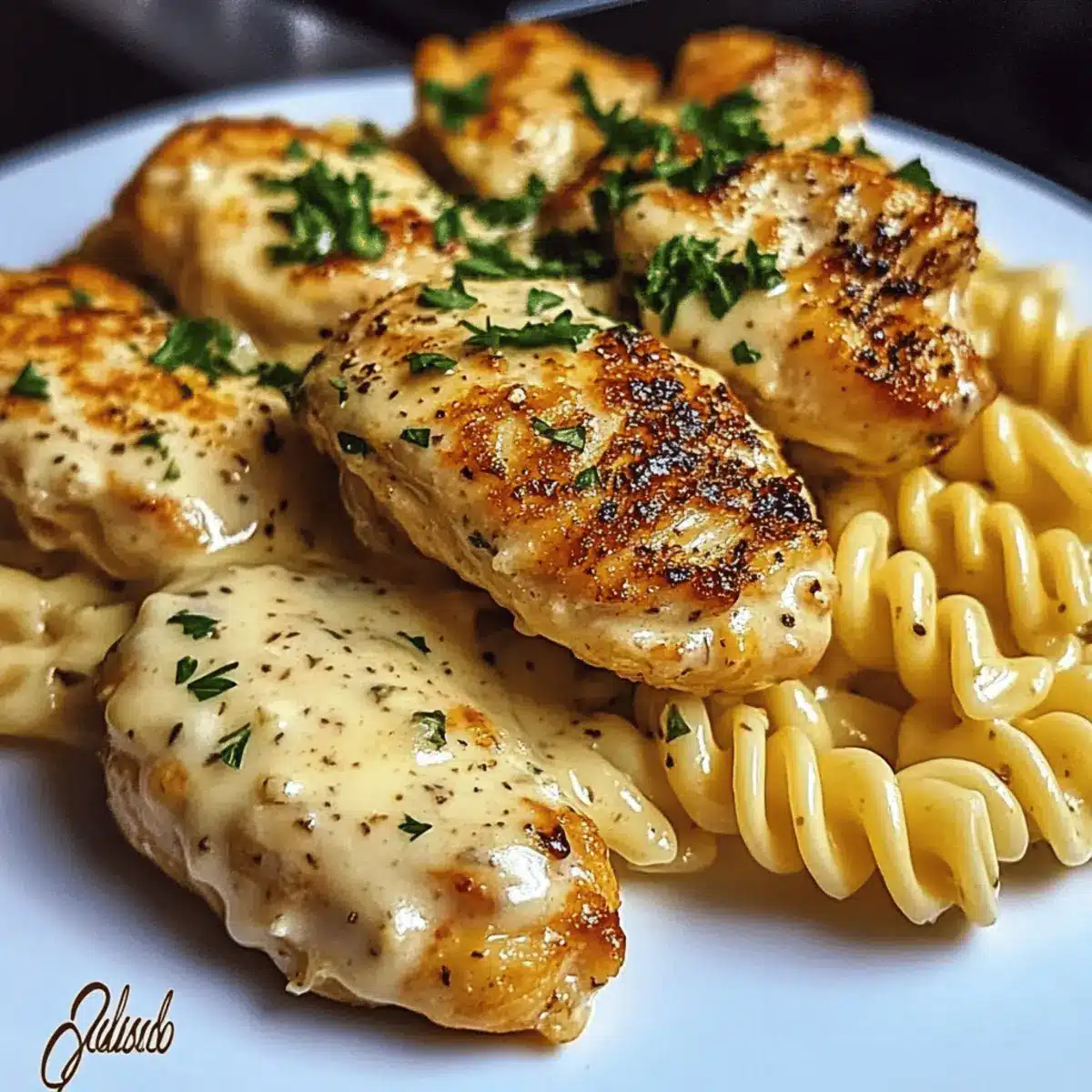 Savory Garlic Parmesan Chicken with Cheesy Twisted Pasta Delight
