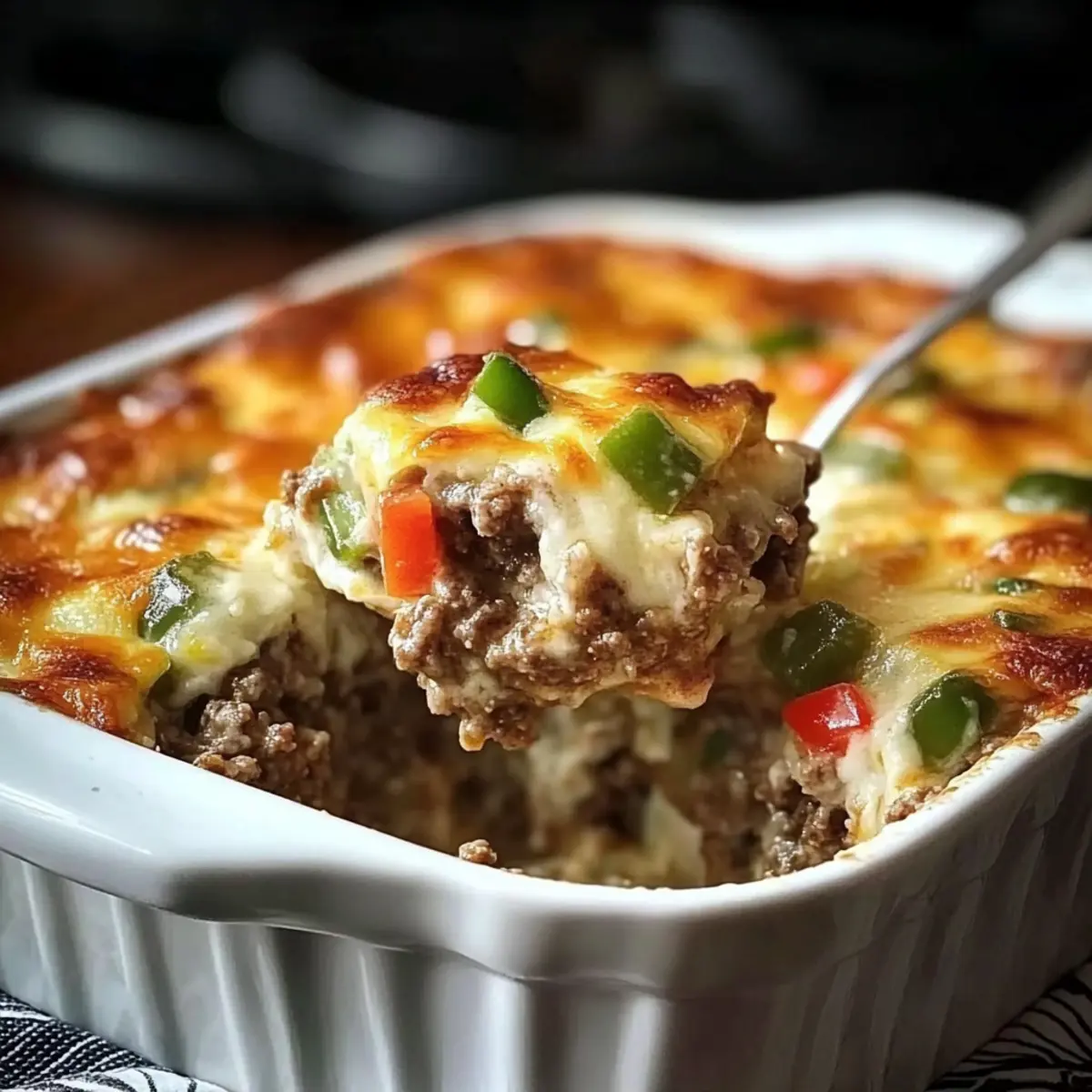 Irresistible Low Carb Philly Cheesesteak Casserole Delight