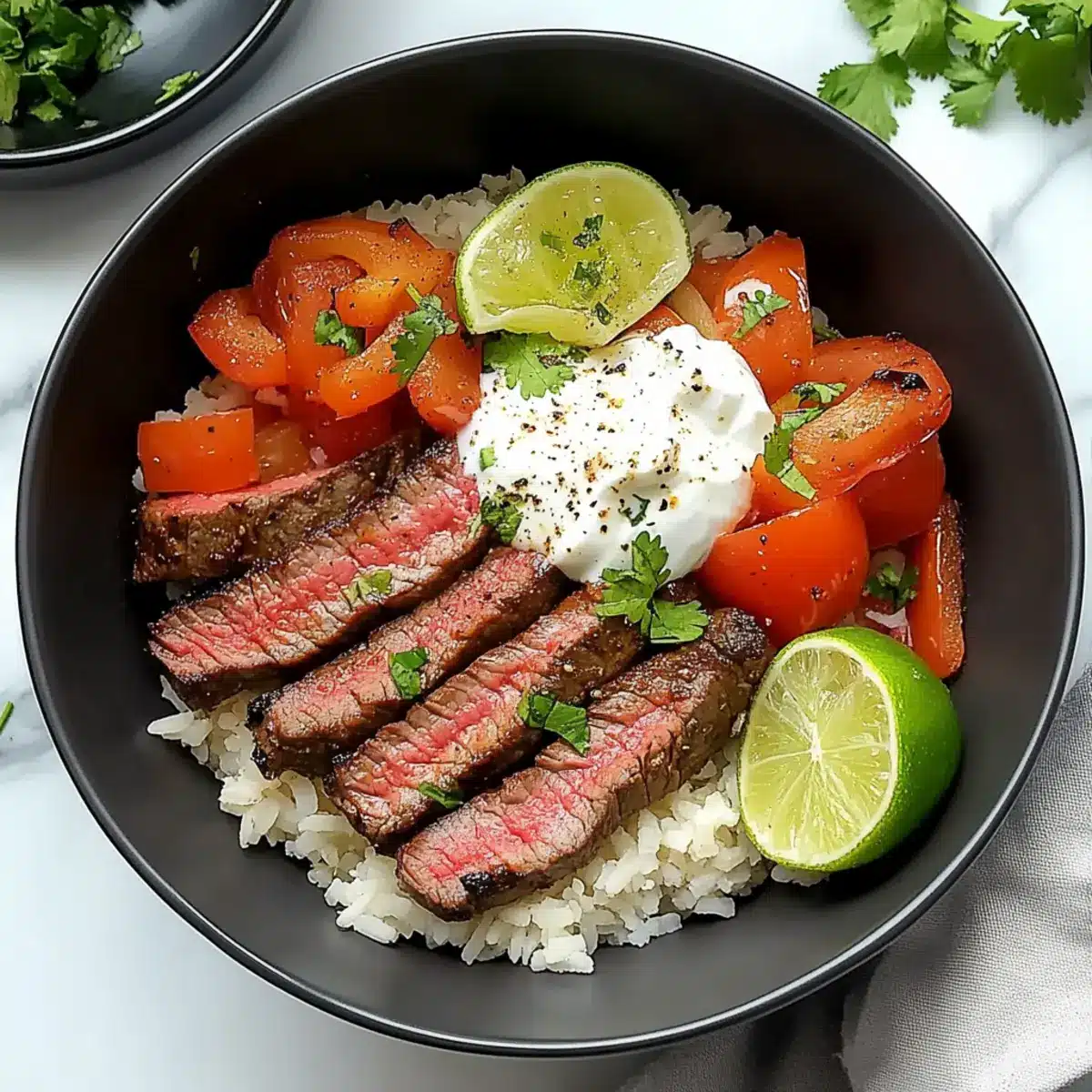 High Protein Steak Fajita Bowl That’s Bursting with Flavor