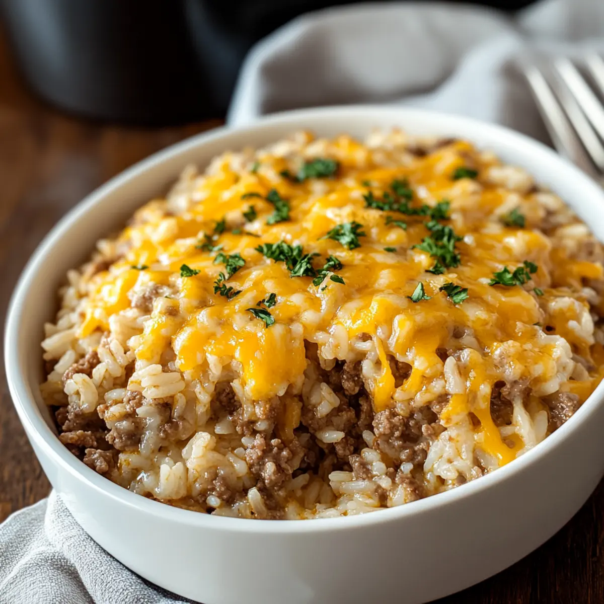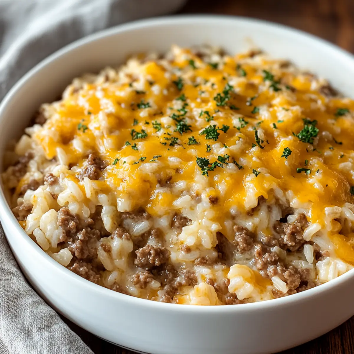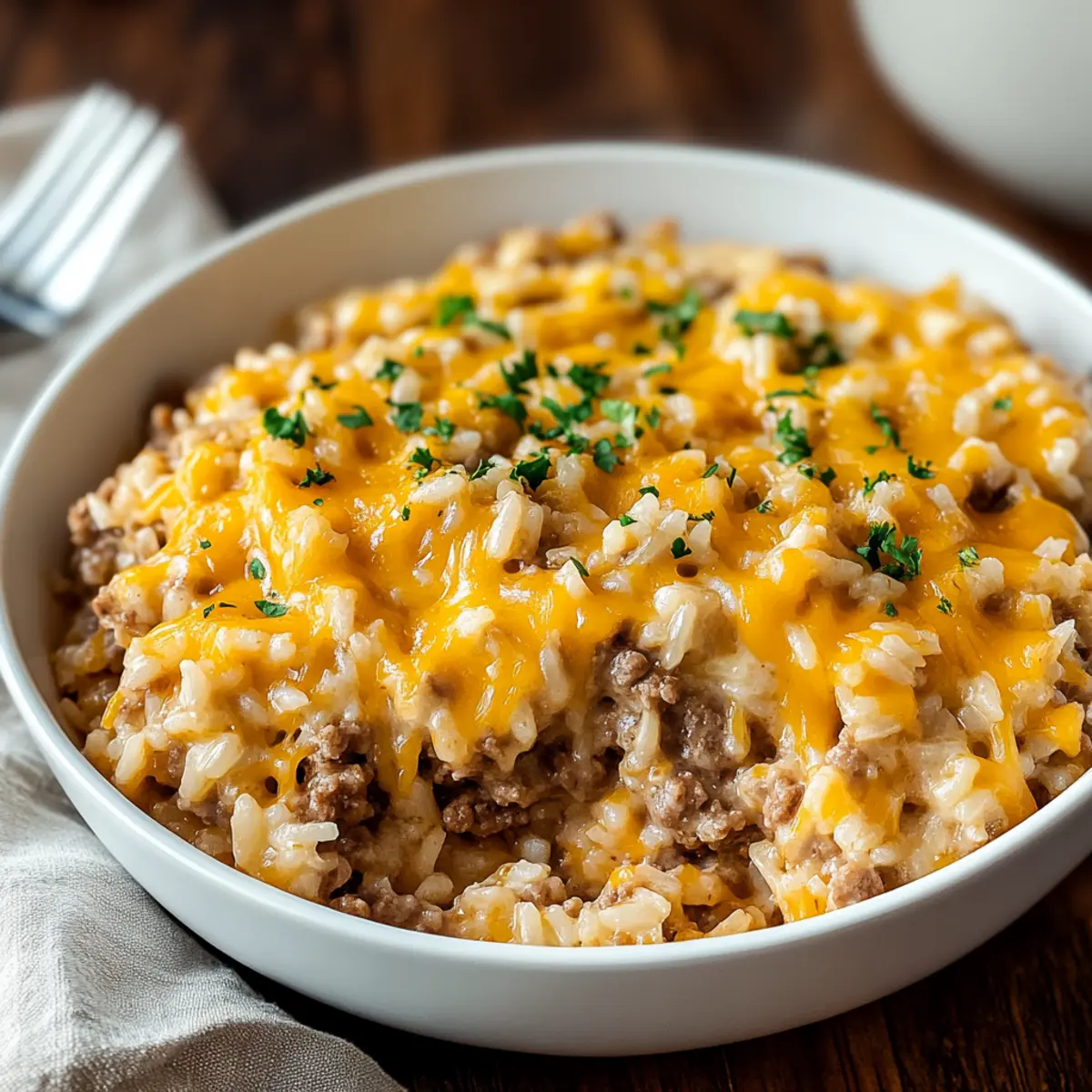 As the kids rush in from school, the enticing aroma of my Cheesy Ground Beef and Rice Casserole fills the air, instantly warming our home. This comforting dish is a go-to for busy weeknights, bringing together the heartiness of seasoned beef with creamy rice and gooey cheese in one hearty serving. With most ingredients found right in my pantry, it’s the perfect meal to whip up without a fuss, ensuring even the pickiest palates are satisfied. Plus, it’s an ideal batch-cooking option—great for meal prep and leftovers throughout the week! What’s better than diving into a warm, cheesy hug on your plate? Let’s explore how to create this family-friendly favorite that will surely become a cherished staple in your home.