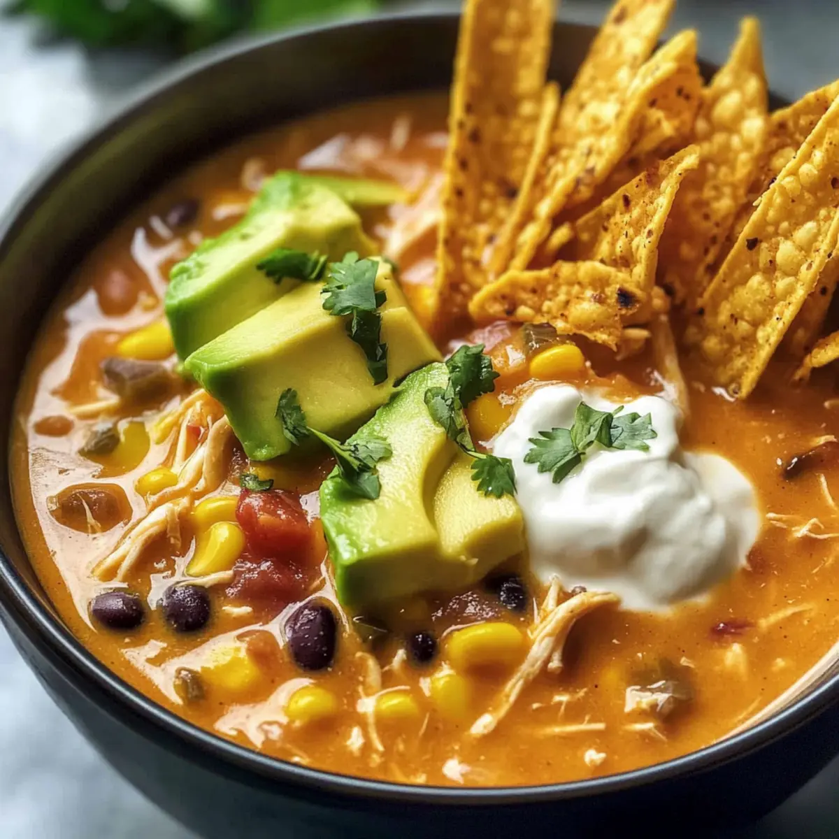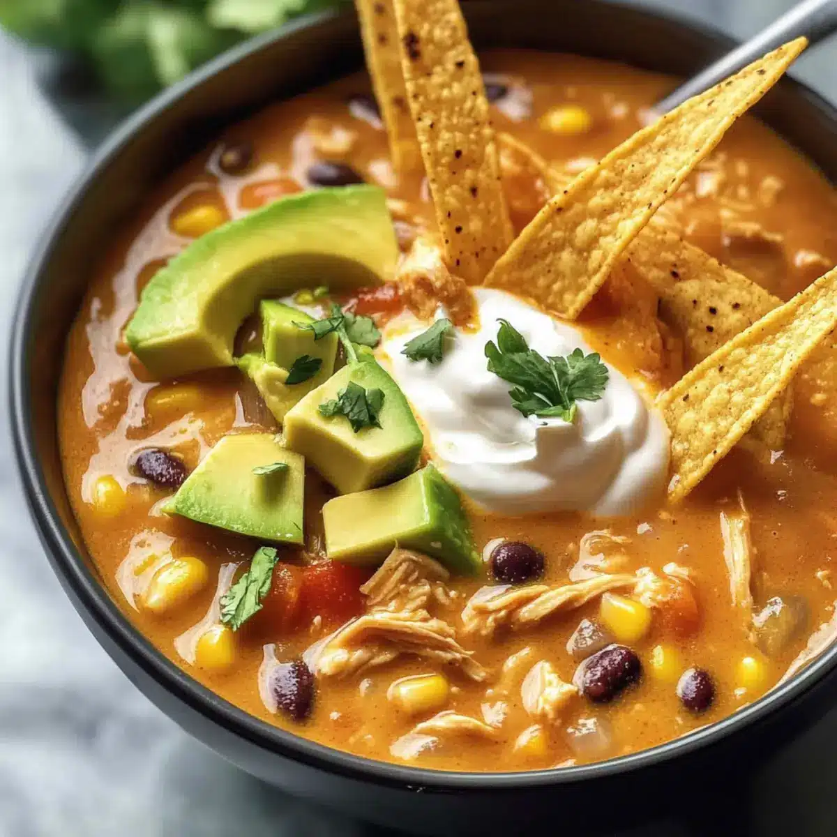 If you find your Chicken Tortilla Soup is thicker than you like, just add a bit more chicken broth or water while reheating. Stir gently until you reach your desired consistency.