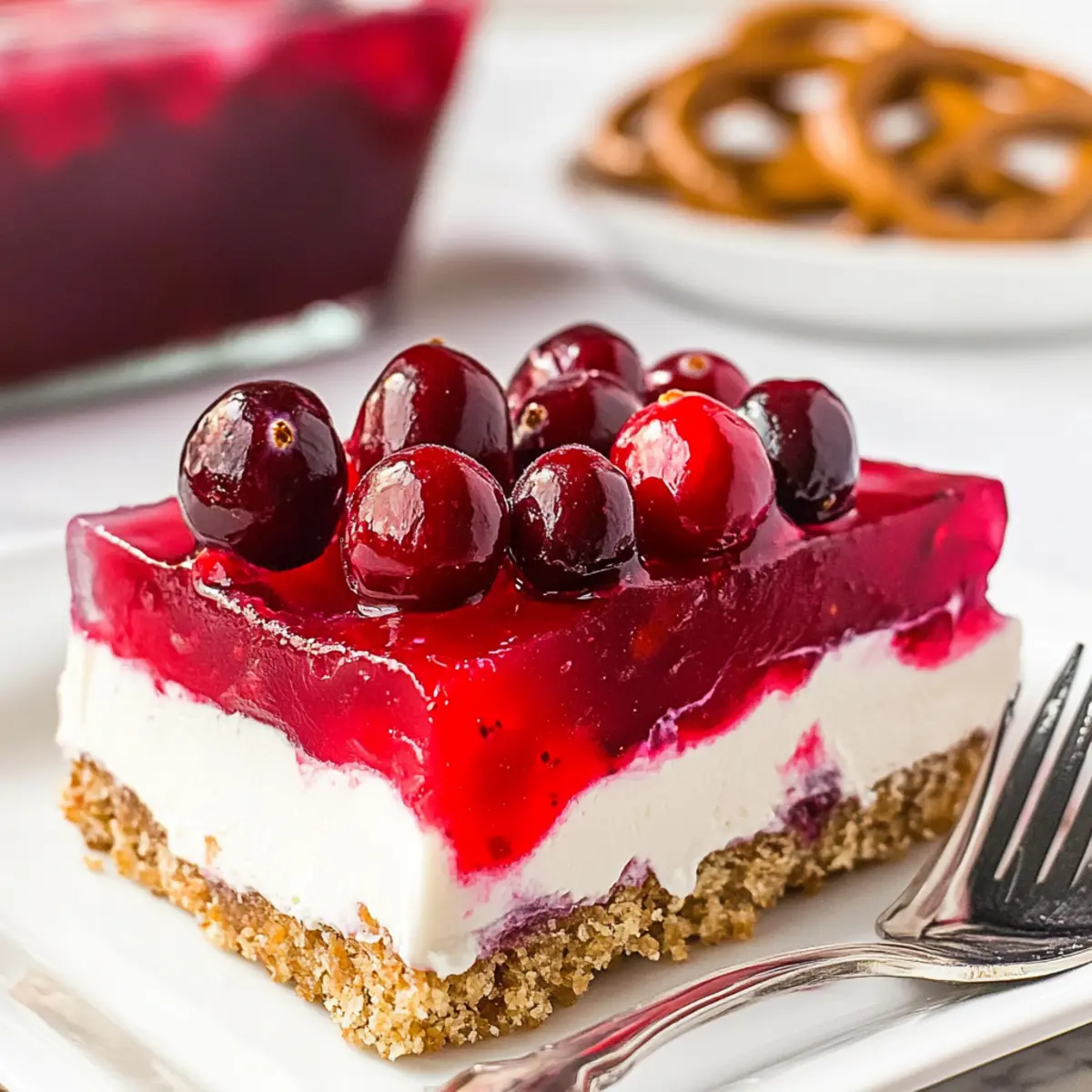 - Slice into squares and garnish with whipped cream, extra pretzels, or fresh cranberries. Serve chilled.