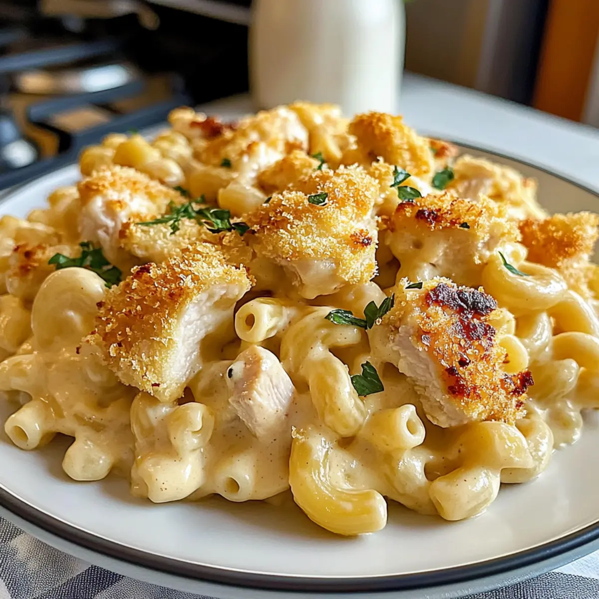 As I stood in my kitchen, the comforting aroma of melted cheese wafted through the air, immediately transporting me to family dinners of my childhood. This Creamy Chicken Mac and Cheese Recipe has a magic about it—a creamy, heartwarming dish that wraps tender chicken in a gooey cheese sauce and envelops perfectly cooked macaroni. It’s a perfect weeknight hero, bringing joy to the table in just about 30 minutes. Not only is it a crowd-pleaser, but it’s also easily customizable, allowing you to incorporate your favorite cheeses or sneaky veggies. A little twist can turn this classic into your own masterpiece! So, are you ready to bring some warmth and smiles into your home with this delightful dish?