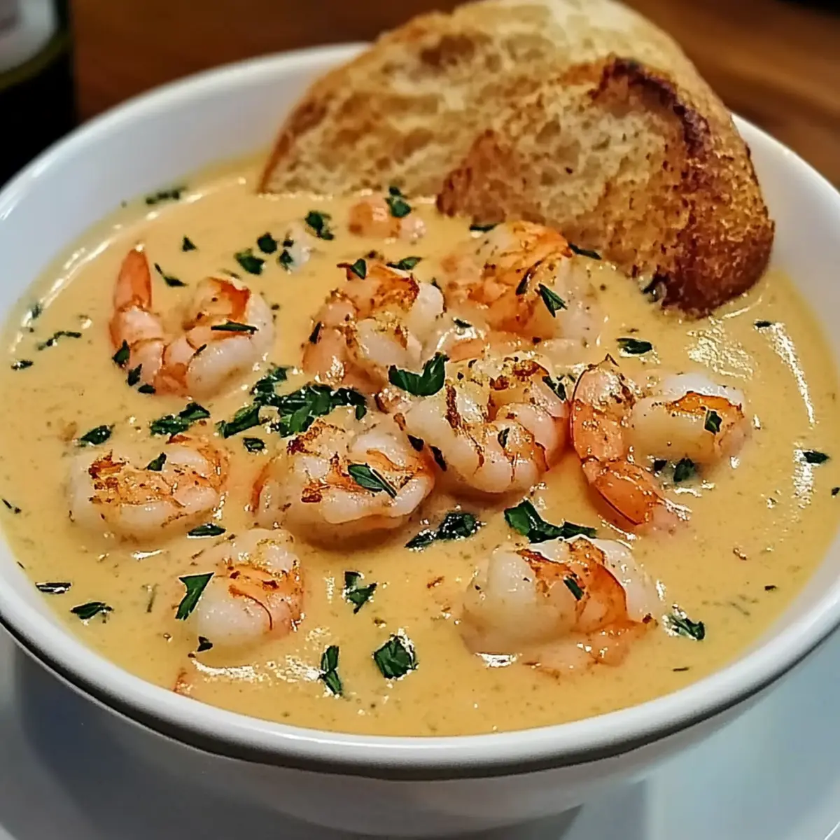 The perfect vessel for scooping up that creamy goodness, crusty bread offers a hearty texture that complements the bisque beautifully. -