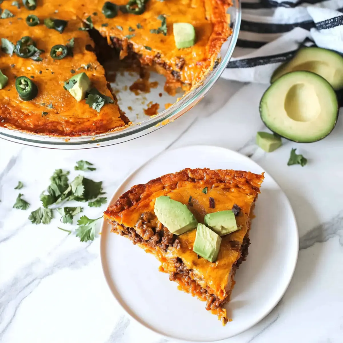 Flavor Boosters: Garnish your Crustless Keto Taco Pie with sour cream, diced avocado, or fresh salsa to elevate the experience!