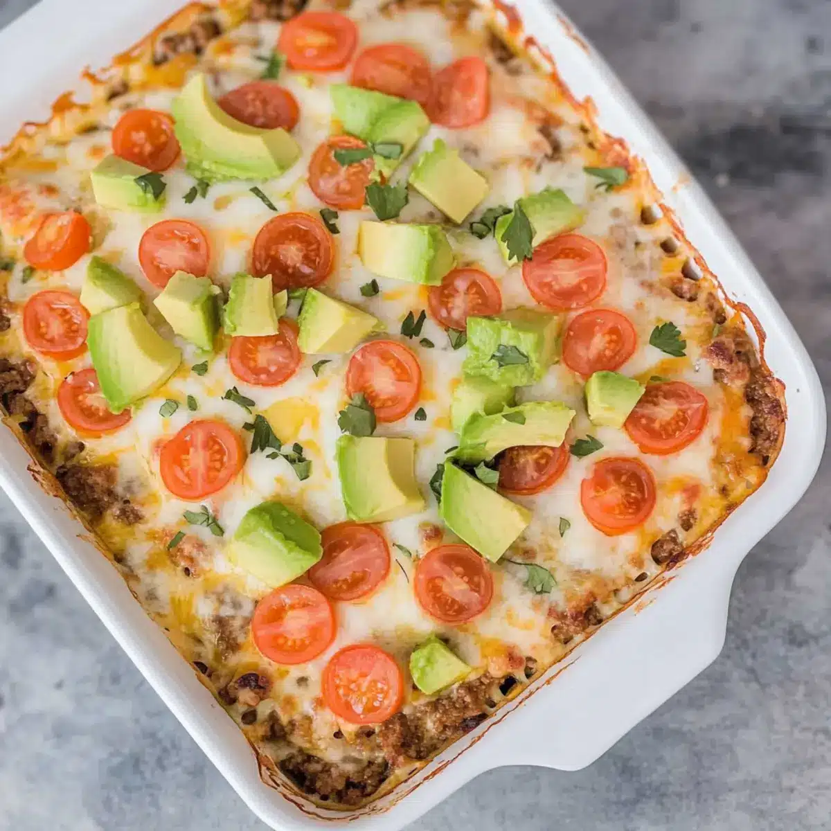 This Healthy Easy Taco Dip is perfect for meal prep enthusiasts looking to save time during busy weeknights! You can prepare the creamy filling (ground beef, Greek yogurt, cottage cheese, salsa, and cheese) up to 24 hours in advance—just cover it tightly with plastic wrap or store it in an airtight container in the refrigerator to maintain its freshness. For the best results, bake the dip right before serving; simply pour the mixture into a baking dish, sprinkle with remaining cheese, and pop it in a preheated oven for 20-25 minutes. This way, you’ll enjoy a bubbly, cheesy masterpiece that’s just as delicious as if you had made it fresh!