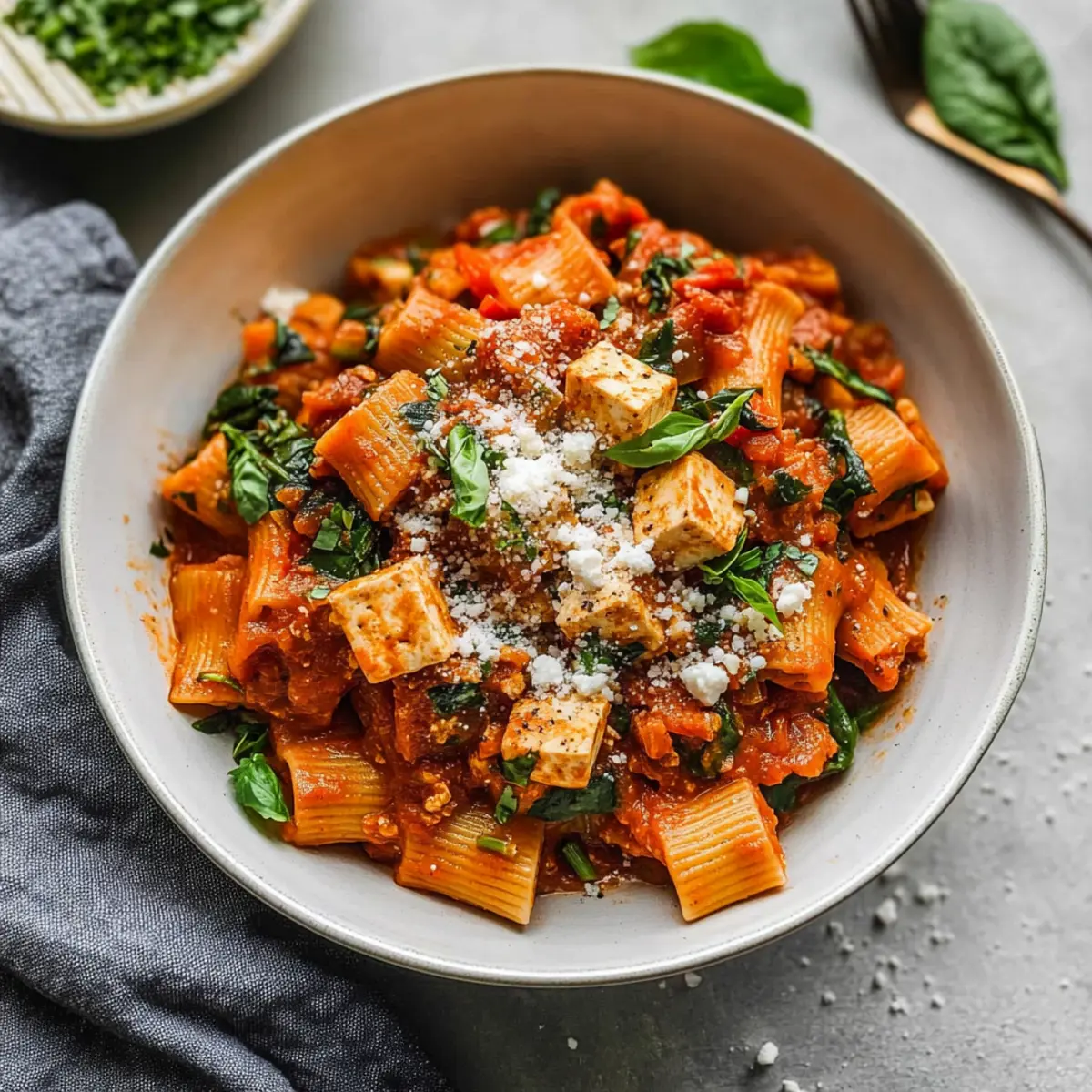 Simplicity at Its Best: This Easy Tofu Tomato Pasta takes just 30 minutes from start to finish, allowing for a stress-free cooking experience on your busiest nights.