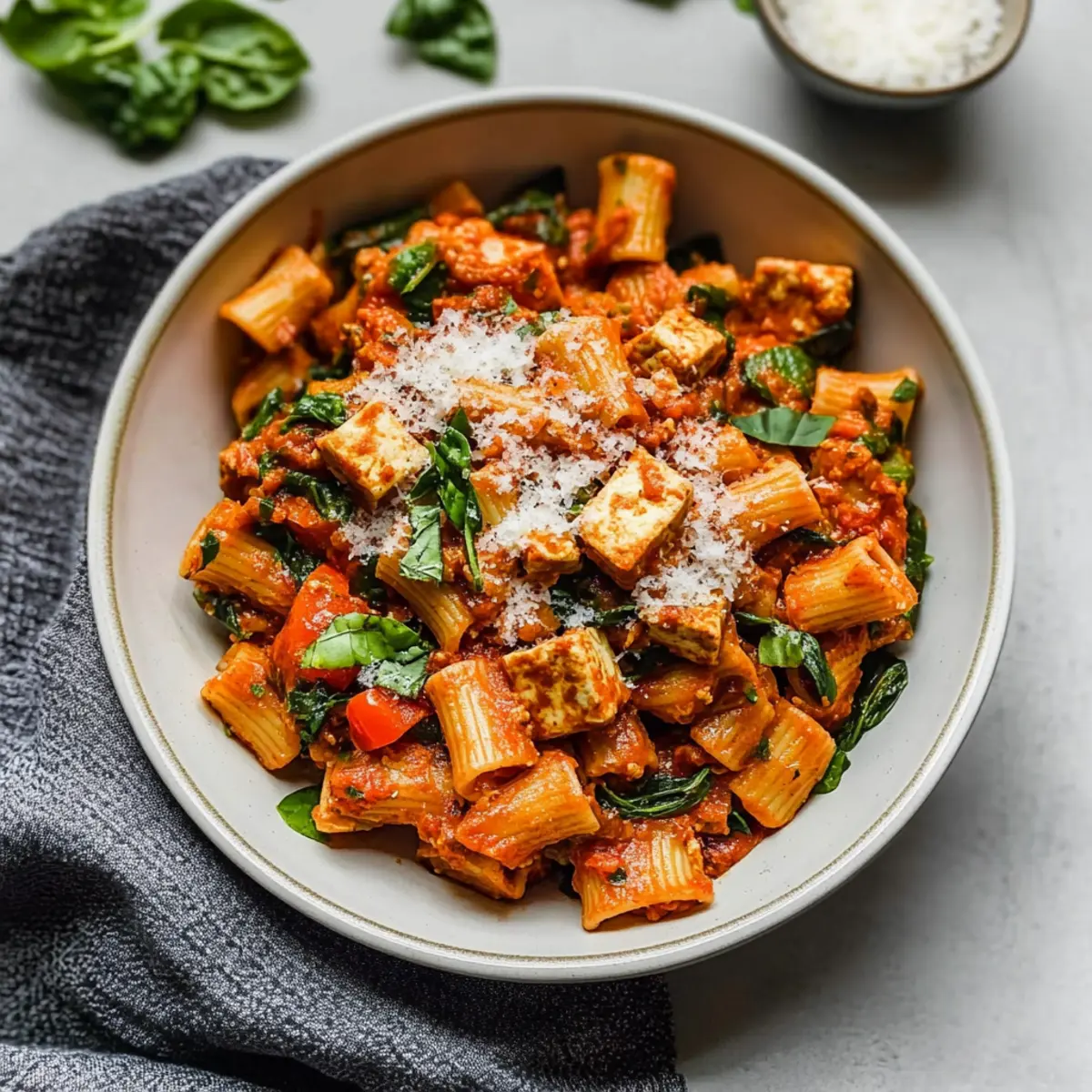 Delicious Easy Tofu Tomato Pasta with Colorful Veggies