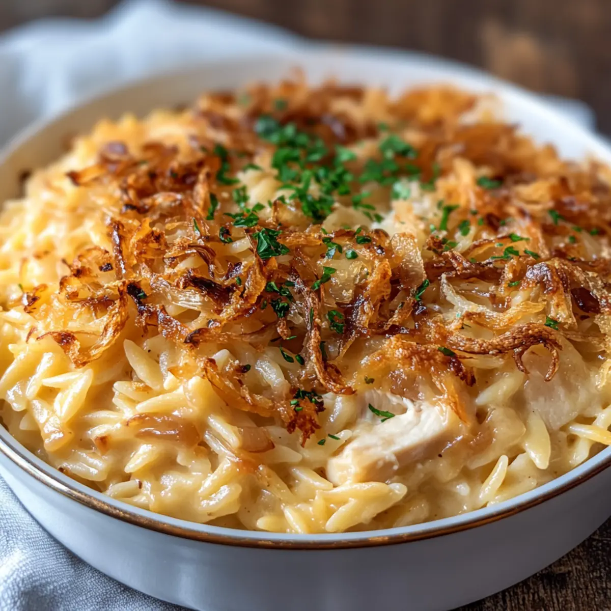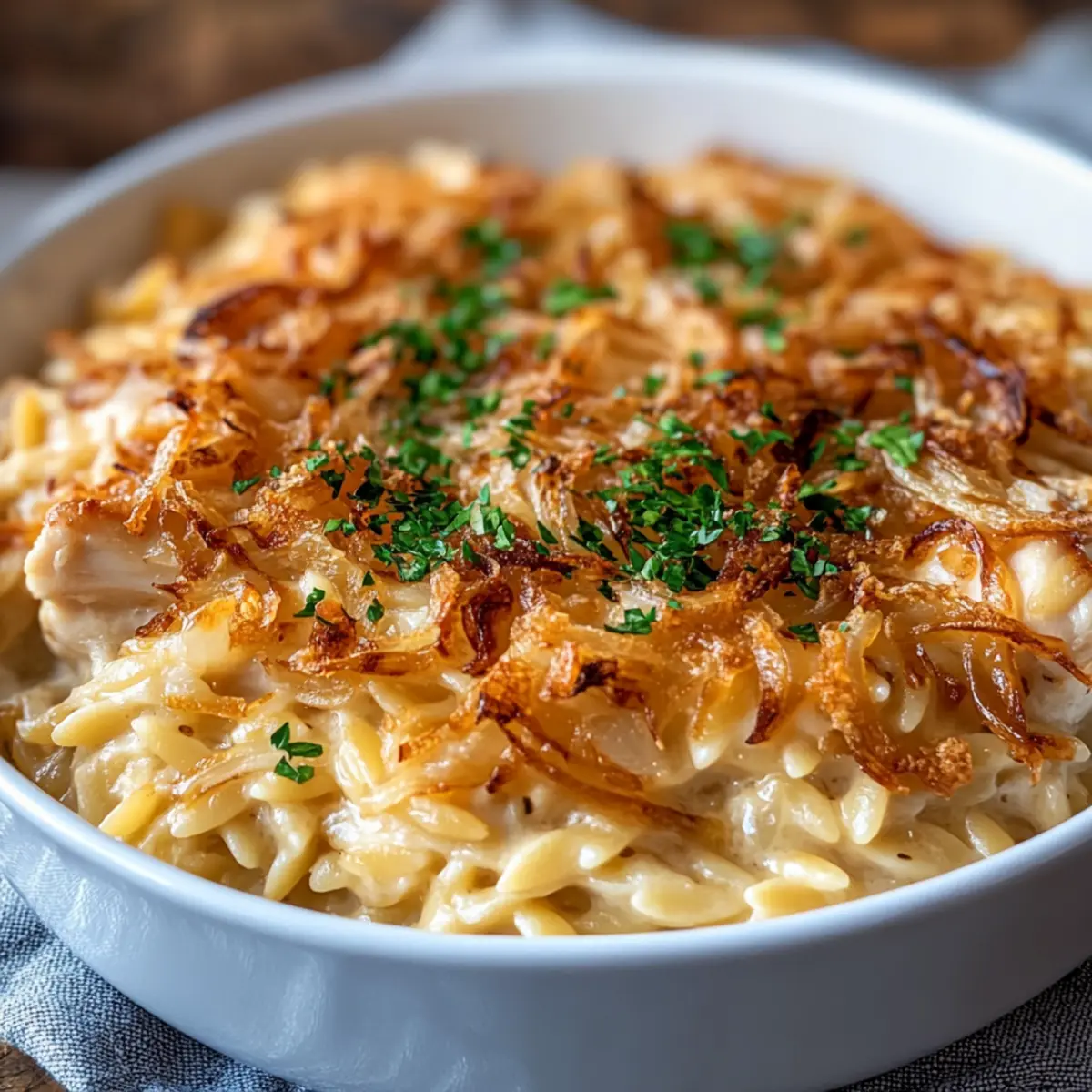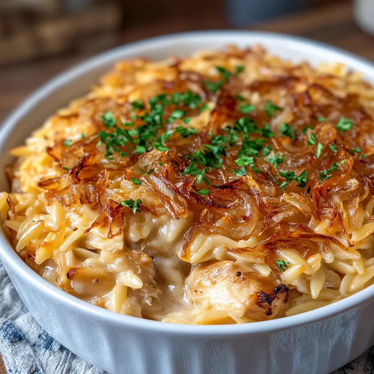 French Onion Chicken Orzo Casserole for Cozy Nights