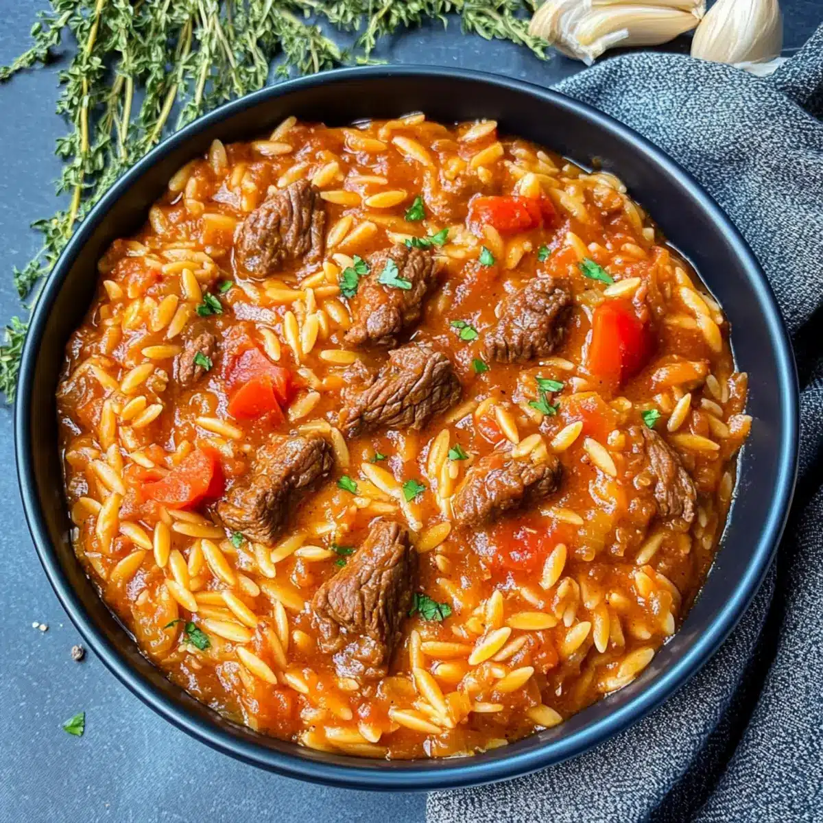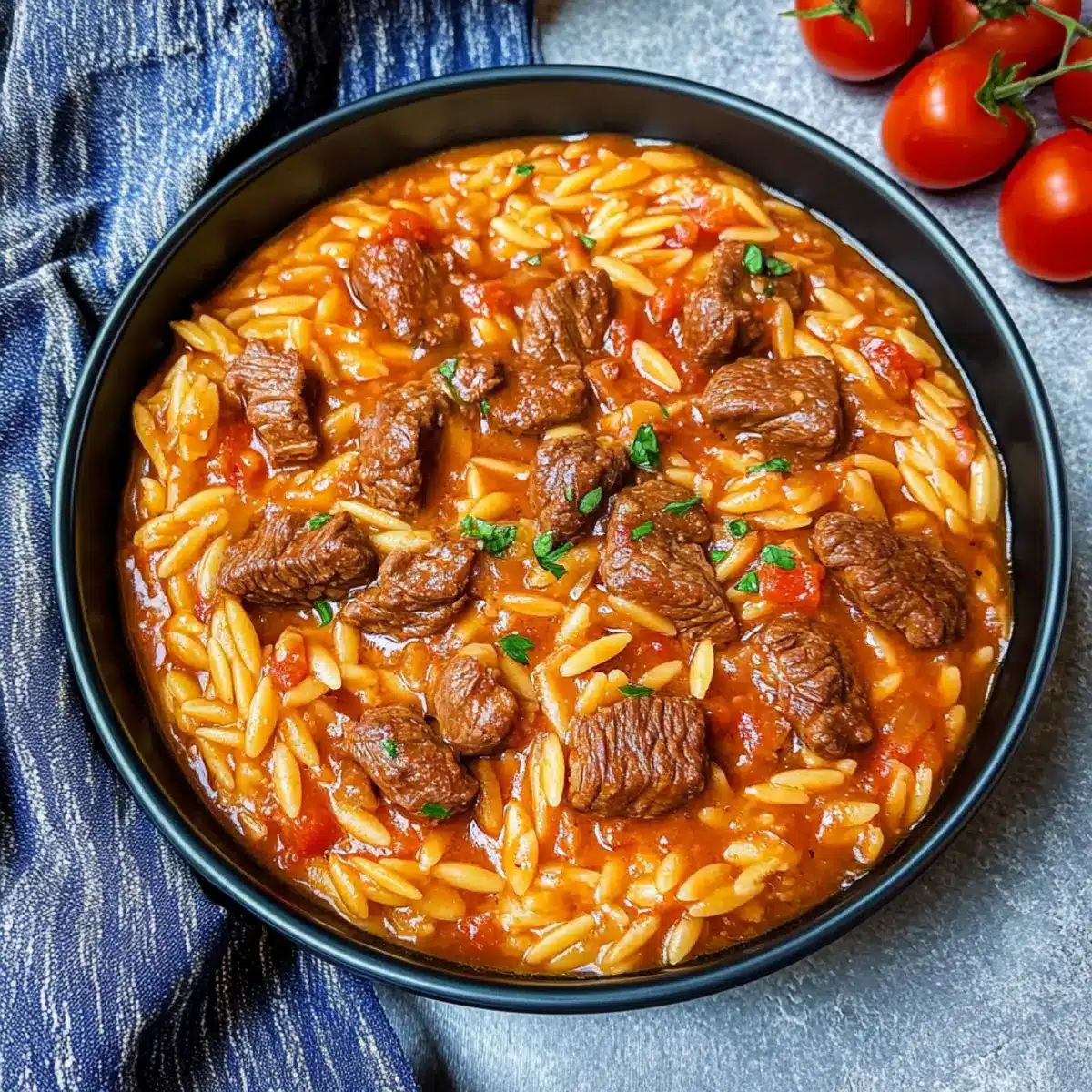 Comforting, this Greek Beef Stew with Orzo brings warmth to your table, making it ideal for family dinners. One-Pot Wonder: Enjoy the simplicity of a meal made in a single pot—less cleaning means more time to savor! Flavorful Fusion: Aromatic herbs and spices infuse the beef and orzo for an unforgettable taste experience. Versatile Option: Easily switch beef for lamb or chicken, or go vegetarian with mushrooms to suit varying palates. Hearty Texture: Tender beef and creamy orzo come together in a rich sauce that warms the heart. Try serving it alongside a refreshing Greek salad or crusty bread for the perfect meal!