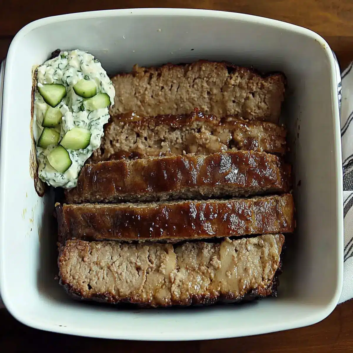 Homemade Tzatziki Sauce: This refreshing yogurt-based dip is a must-have, enhancing every bite with its cool, creamy contrast to the spiced meatloaf.