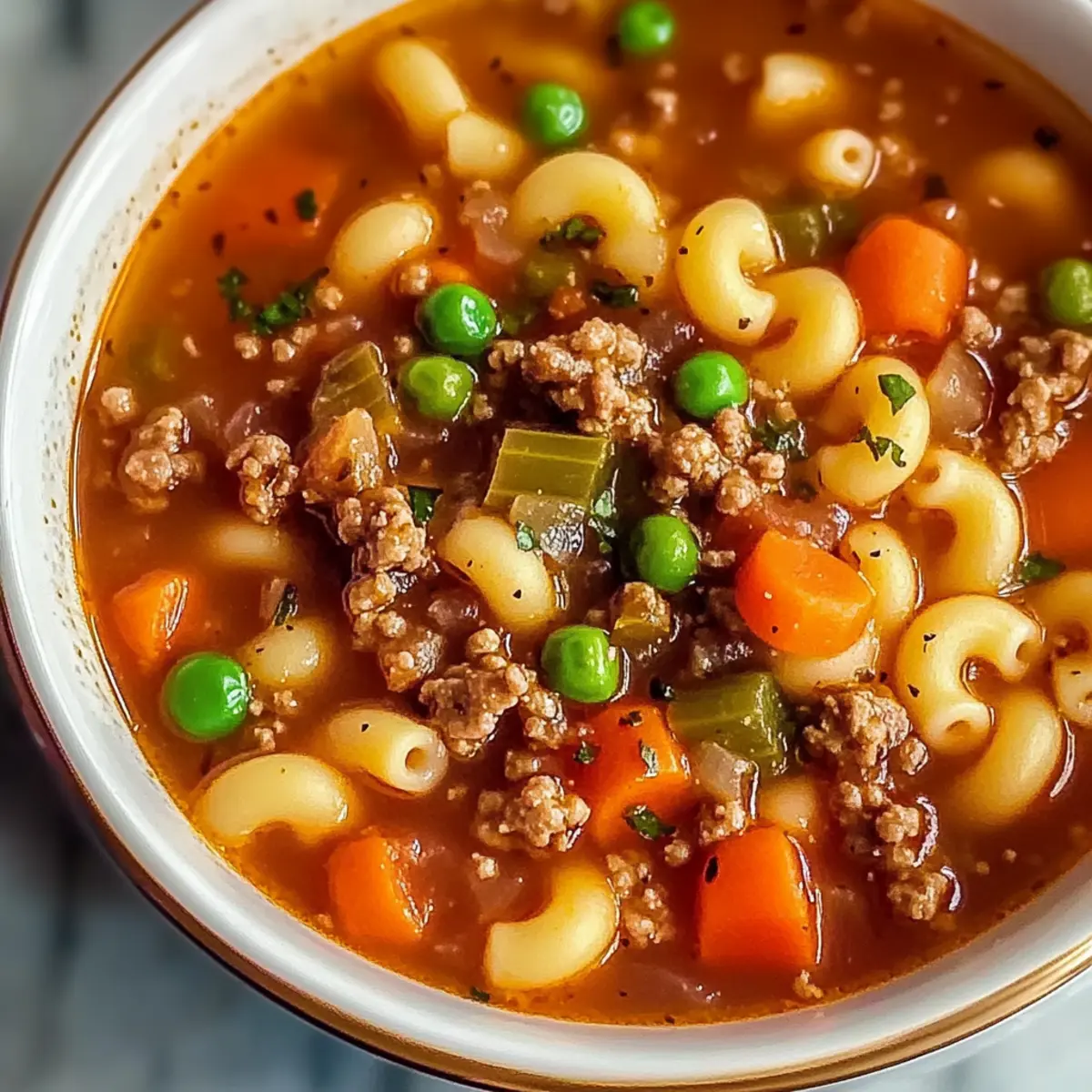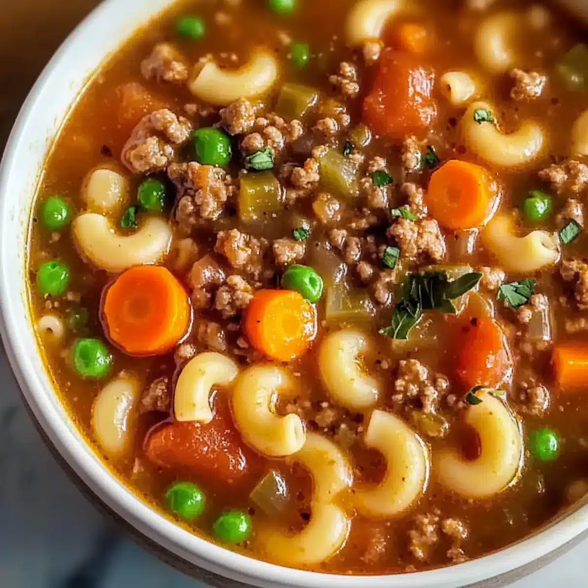 Comforting Homemade Ground Beef Pasta Soup in Just 30 Minutes
