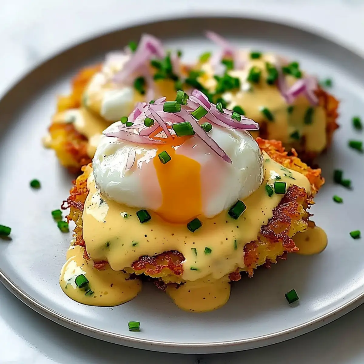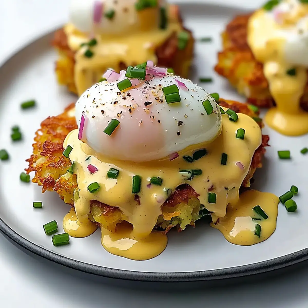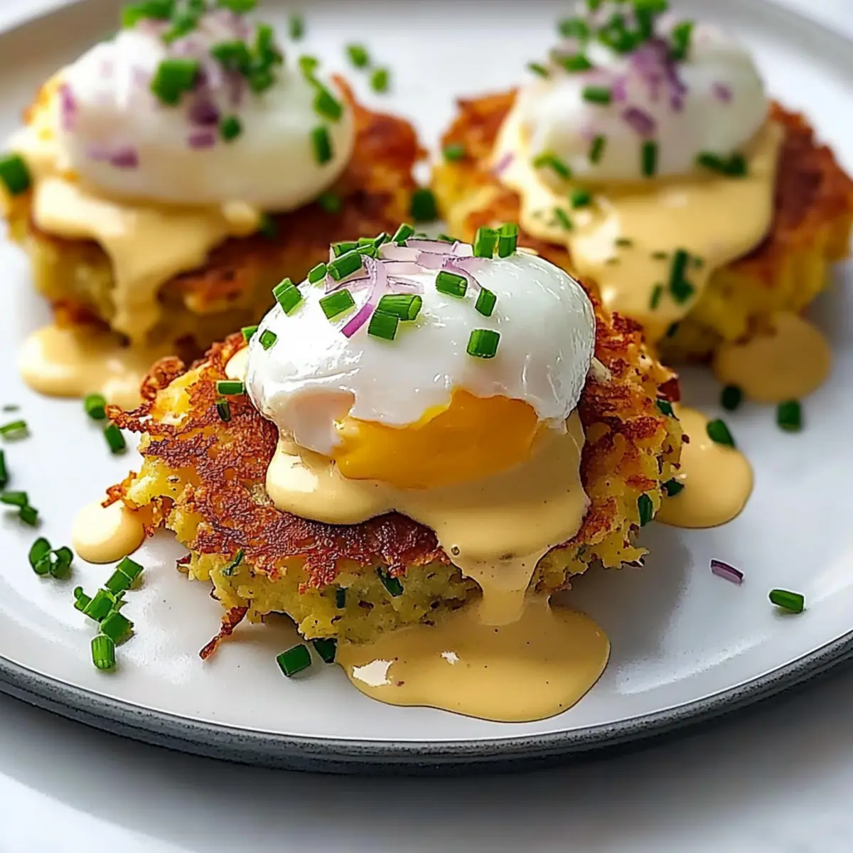Savory Bacon: Incorporate crispy bacon bits into the latke mixture for an irresistible smoky flavor that pairs beautifully with the richness of the hollandaise.