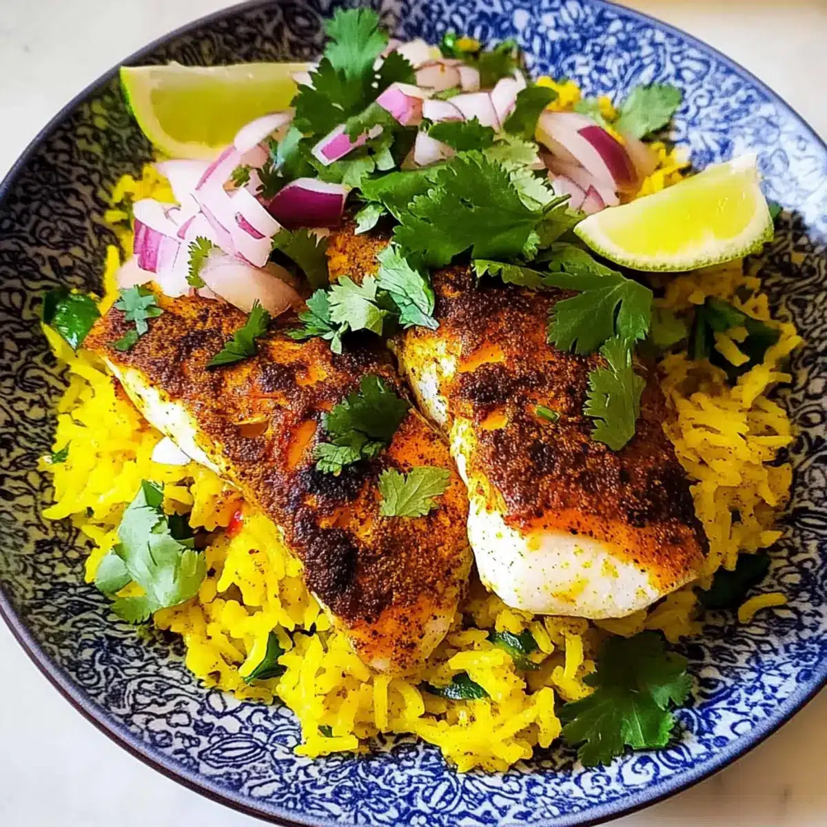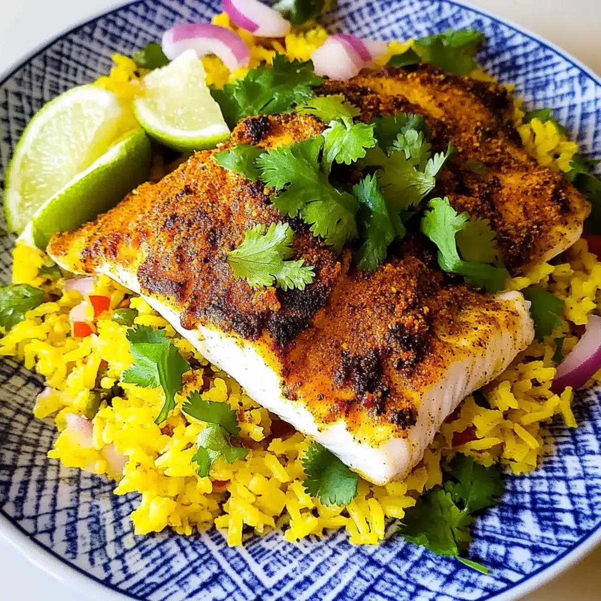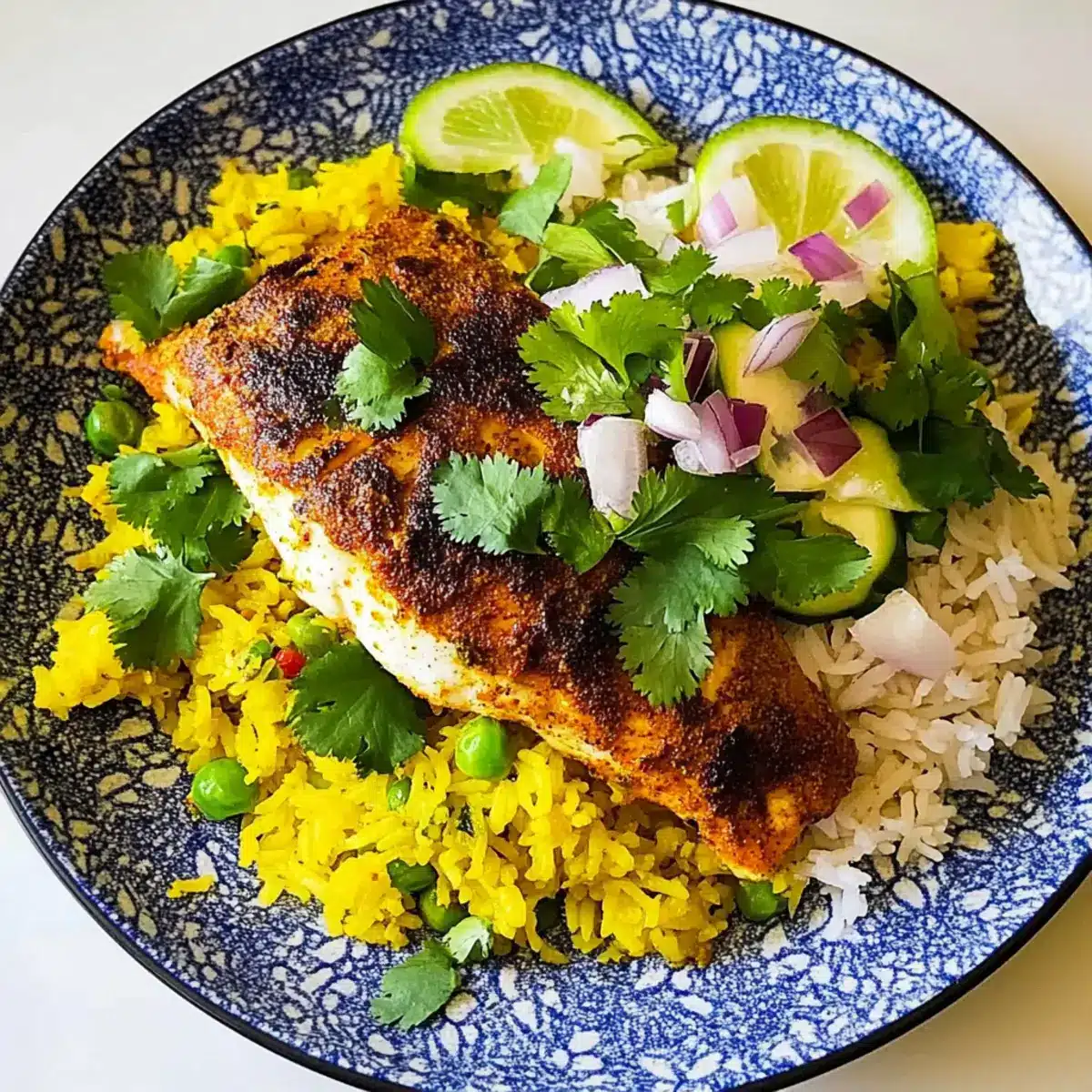 Lower-Carb Cauliflower Rice: For a low-carb version, use cauliflower rice instead of regular rice. Sauté it lightly with turmeric to keep the vibrant color, offering a lighter side that complements the fish perfectly.