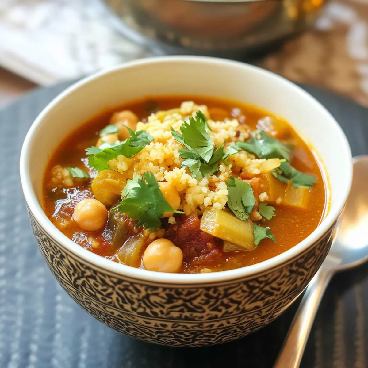 Savor the Comfort of Moroccan-Spiced Vegetable Soup with Couscous