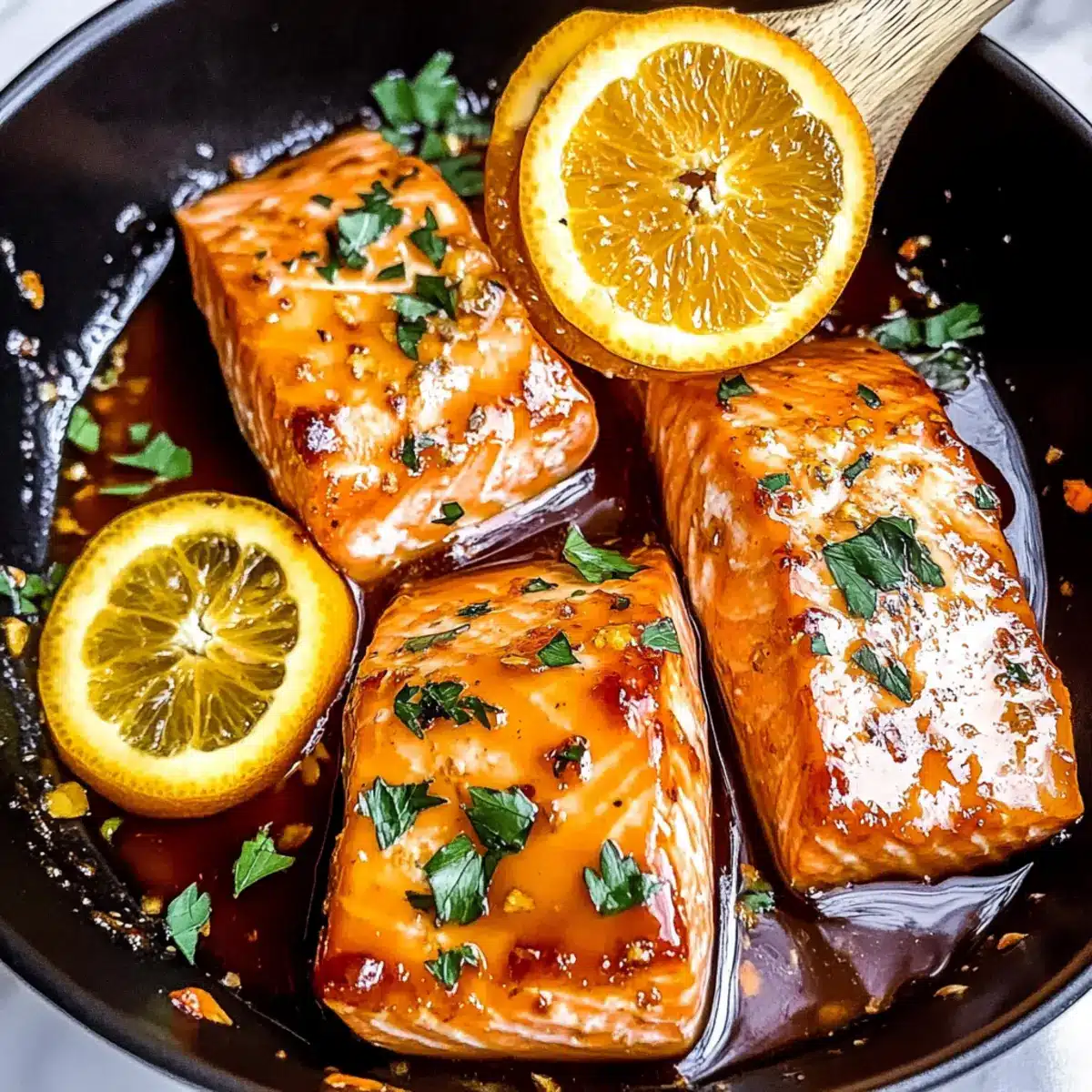 Once the salmon is generously coated, remove the skillet from heat. Garnish with freshly chopped parsley for a pop of color and extra flavor. Serve your beautiful Orange Glazed Salmon warm, perhaps alongside your favorite vegetables or rice for a wholesome, family-friendly dinner that’s sure to impress!