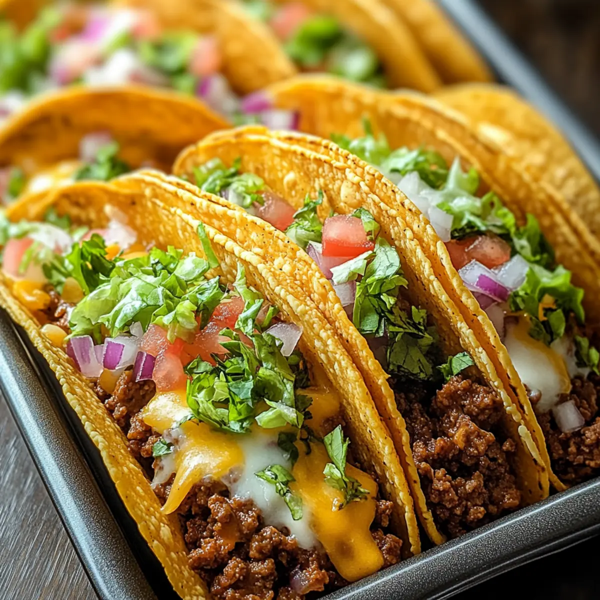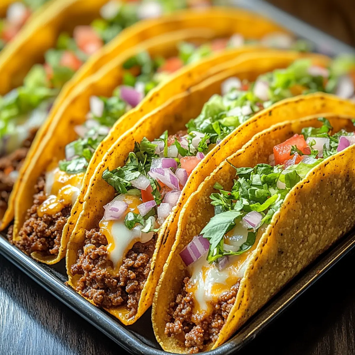 Upon entering the kitchen, the warm, cheesy aroma of my Oven-Baked Cheesy Tacos immediately envelops me, sparking a little joy within. These crispy, loaded tacos bring together seasoned beef and a gooey cheese blanket, transforming a simple dinner into a flavorful fiesta in just 35 minutes! Whether you’re navigating a hectic weeknight or planning a weekend get-together, this dish is a sure crowd-pleaser—and that’s not even the best part! They’re fully customizable for everyone’s taste, making them a fantastic gluten-free option that even the pickiest eaters can’t resist. As you prepare to indulge in this crunchy delight, are you ready to discover your new favorite twist on taco night?