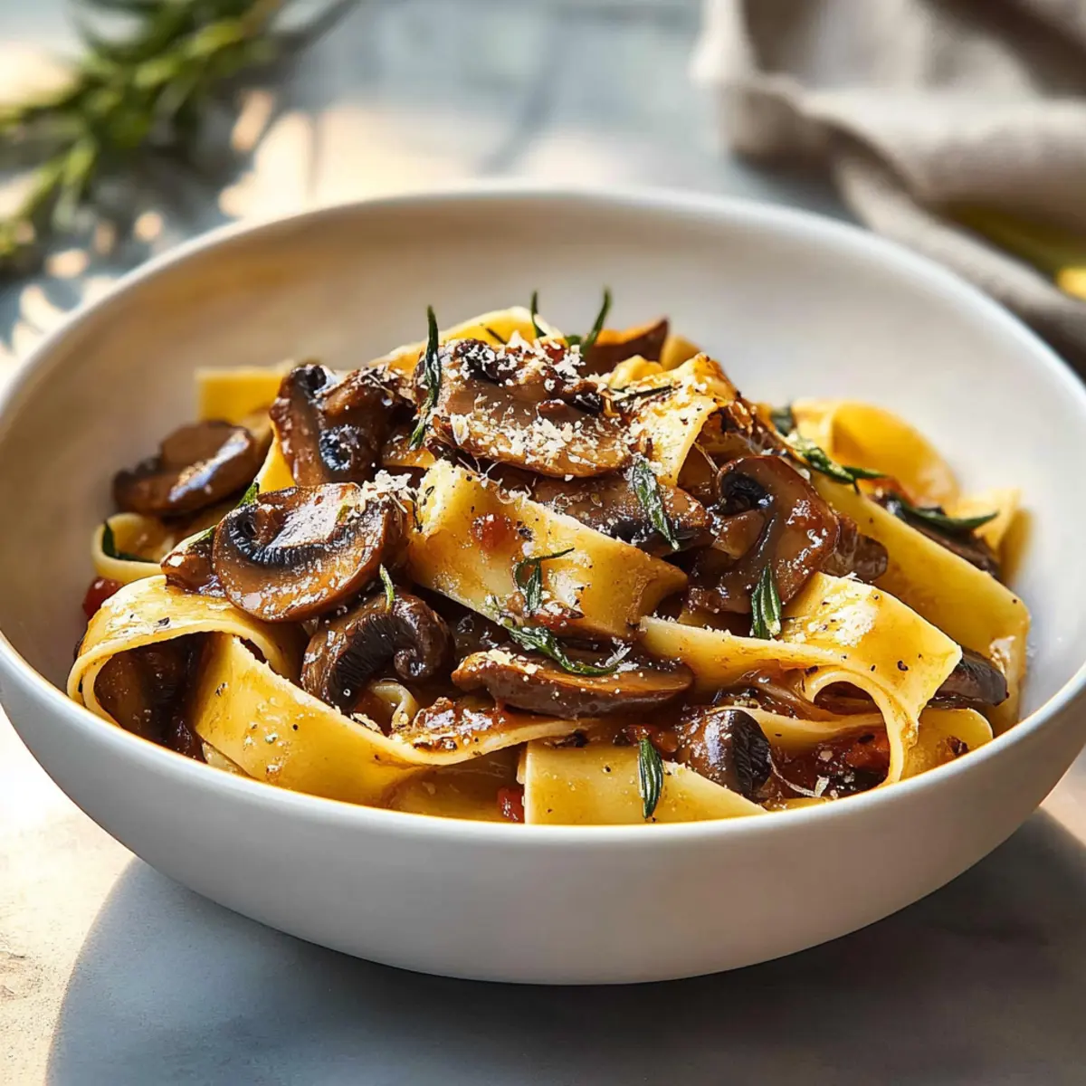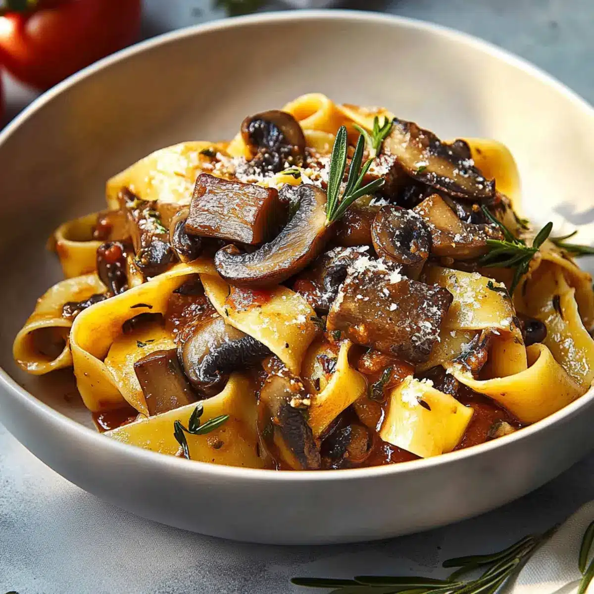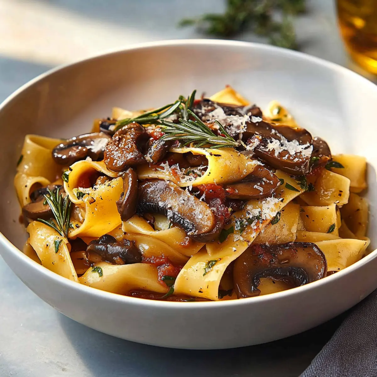 Indulge in Pappardelle with Portobello Mushrooms Tonight!