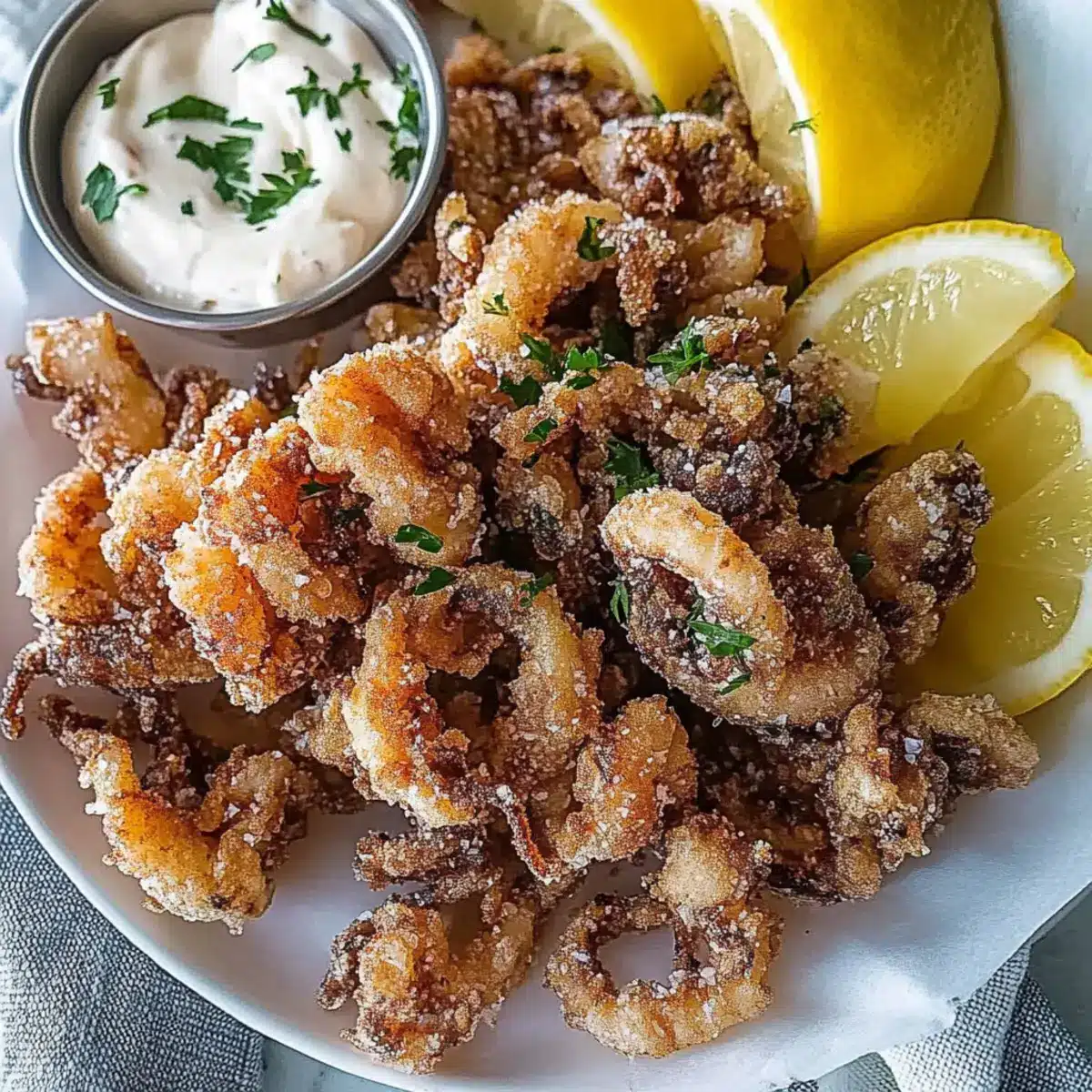 The aroma of sizzling seafood wafted through my kitchen as I embarked on the delicious task of making crispy salt and pepper fried squid. This classic Mediterranean dish, often enjoyed as an appetizer, delivers a tantalizing crunch with just two simple seasonings—salt and pepper. With its quick prep time, this recipe is perfect for those spontaneous gatherings or cozy nights in when you crave something satisfying yet elegant. Each golden bite of calamari brings a light, airy texture that’s simply irresistible, especially when paired with a homemade garlic mayo and a squeeze of fresh lemon. Ready to elevate your appetizer game? Let’s dive into this crowd-pleaser that’s bound to impress friends and family alike!