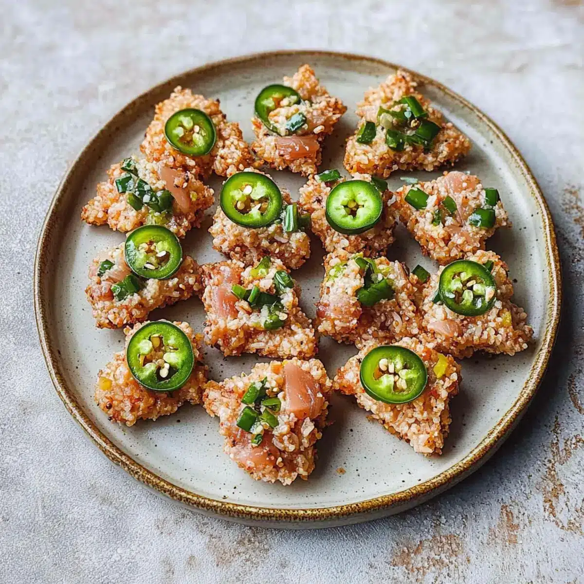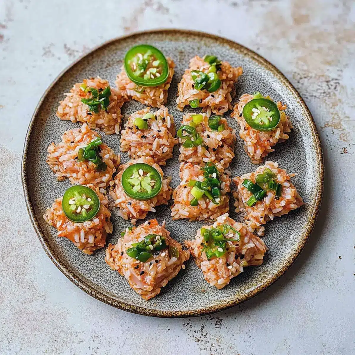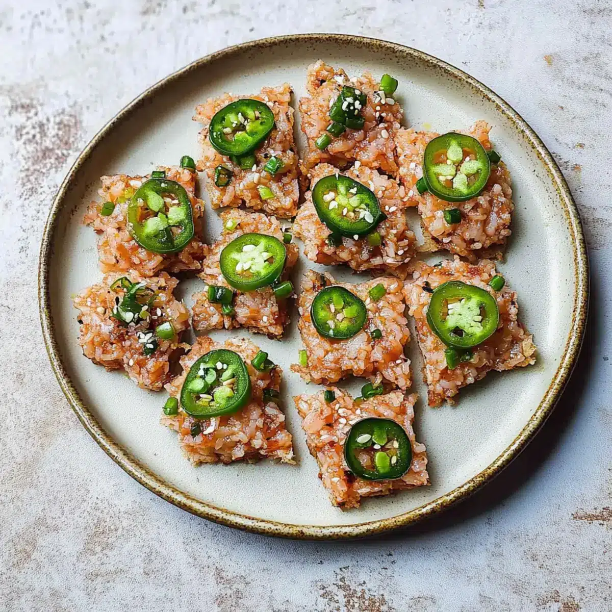 To assemble your Worthy Spicy Tuna Crispy Rice, place a generous scoop of the spicy tuna mixture on top of each crispy rice piece. Sprinkle with black sesame seeds and add thin slices of jalapeño for an extra kick. Serve immediately for that irresistible contrast of crunchy rice and tender tuna, delighting your guests with this visually stunning and delicious appetizer.